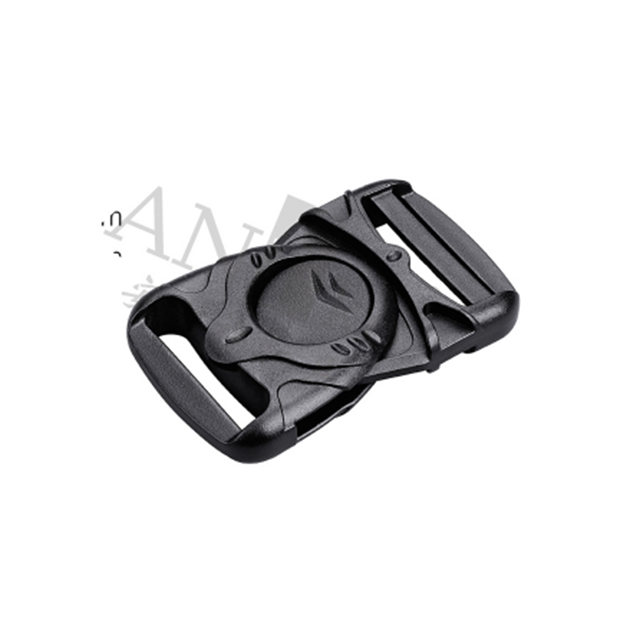 它由公扣和母扣组成。公扣设计成箭头形状,用于解锁组件并插入舌片,而母扣则对应卡槽和锁定结构;按下箭头区域解锁,将舌片插入母扣锁紧,适配20mm、25mm、38mm三种宽度带。